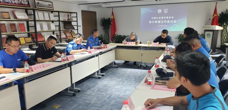 2021年6月9日上午,中国社会福利基金会救灾救援工作座谈会在京举行。来自福建省蓝豹救援服务中心、镇雄蓝豹应急救援中心、南京雨花蓝豹救灾救援公益促进中心、宜宾蓝豹救援队、江西抚州市蓝豹救援队和武宁县蓝豹救援队的负责人及代表共11人到会,中国社会福利基金会吴明副秘书长、王伏虎副秘书长出席座谈会。