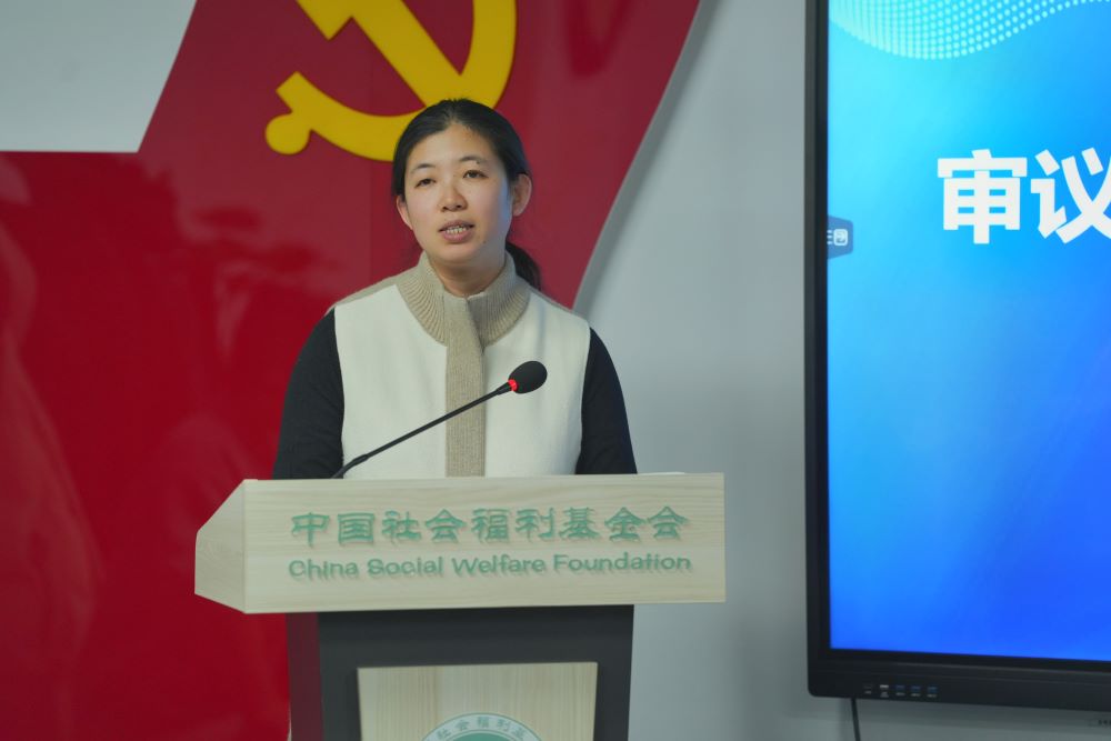 中国社会福利基金会副秘书长杨卉围绕基金会财务状况、收支状况、财务工作等内容进行了年度财务工作报告。