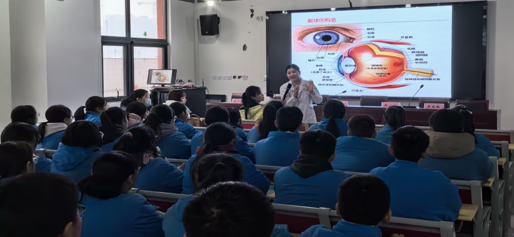 捐赠仪式后爱心企业河南辉县视必康眼科医院王广勇院长带领专业医生对现场300位在校同学进行了有趣的近视防控科普活动。当日晚20:00也对这5所学校的家长们进行了一场线上的“家庭教育”公益直播课,直接受益人达万人,简介受益人达3万余人。