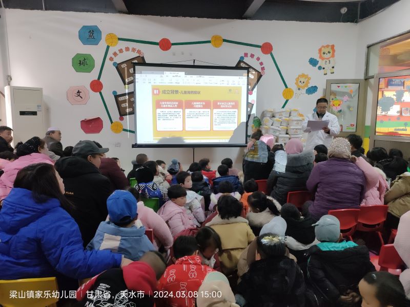 为了营造安全、科学、健康的儿童用药环境,提高居民儿童用药安全知识,传递“儿童要用儿童药”理念,中国社会福利基金会小葵花公益课堂走进梁山镇家乐幼儿园开展儿童用药安全。活动邀请了梁山镇卫生院陈大夫进行了安全用药宣导活动,并现场发放小葵花药箱和儿童安全绘本,为本地儿童成长保驾护航。小葵花公益课堂开展,为儿童家长和幼儿园教职工开展科普宣传,在活动中,陈大夫主要围绕儿童常用药剂类型及其特点、不同药物的服用时间、儿童用药禁忌、合理使用抗生素这几个方面进行科普讲解,也就是说紧紧围绕着小葵花课堂主题进行。