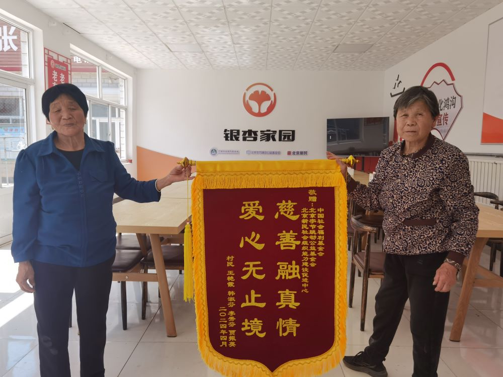 长期以来,银杏家园公益项目始终关注老年人群的生活福祉,项目用真诚的爱心和专业的服务,为老人们提供了温馨的家园。如今,这面锦旗成为了四位奶奶对工作人员付出的最好见证。