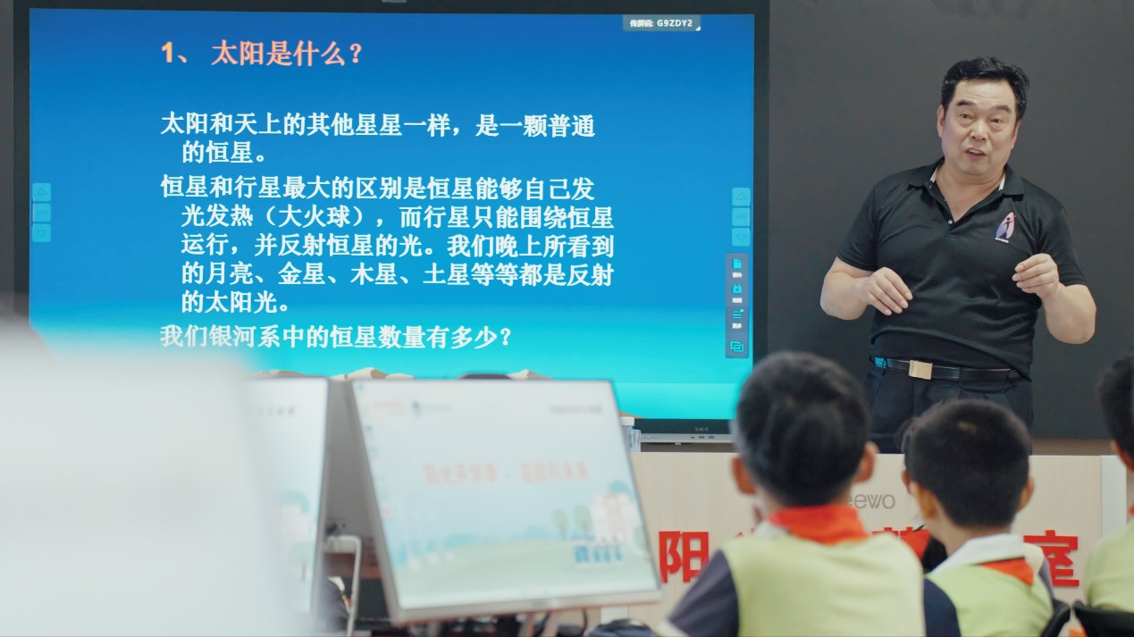 课程中,景海荣博士用生动有趣的语言讲解了天文宇宙、新能源利用等方面的知识,还饶有兴致地与学生们进行了问答互动。孩子们不仅享受了精彩丰富的课程内容,还真正领略到了“坐在家里看世界”的无边际教育的魅力。而这正是阳光智慧教室的神奇所在——打破物理界限、连接外部世界,实现优势教学资源的跨时空传导。