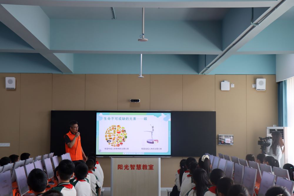 揭牌仪式结束后,与会人员共同参观了阳光智慧教室,工作人员现场详细讲解了智慧教室的各项功能,阳光智慧教室公益项目的志愿者还为孩子们上了一堂生动的科普课。此次捐赠的智慧教室能容纳56名学生。智慧教室集直录播、教学互动、远程教学功能及辅助教学等功能于一体,可实现情景式互动,颠覆了过往传统的“听讲”单向知识传授模式,有利于优势教育资源的快速复制传导。