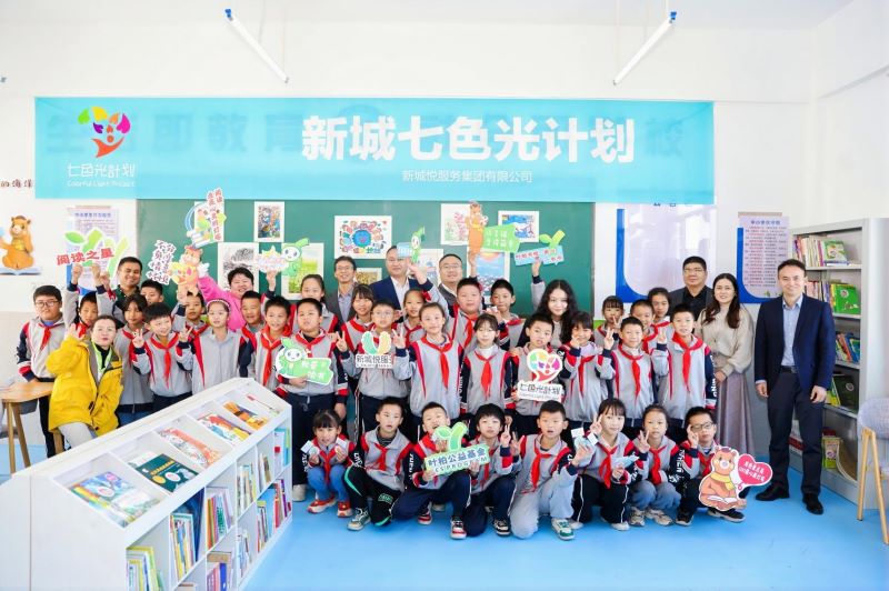 新城悦服务集团有限公司代表和叶柏公益代表向学校捐赠图书馆,希望这座光彩图书馆可以成为孩子们增长见识、扩展眼界的知识乐园,成为大家梦想起航的心灵驿站!