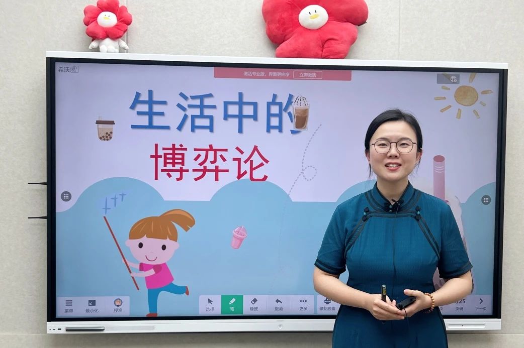 本次讲座从店家降价促销这一常见的生活现象入手,让孩子们在“模拟商战”等课堂游戏真实体验博弈论在生活中的应用,引导孩子们理解“纳什均衡”等博弈论基础概念,启发孩子们思考如何打破“囚徒困境”,推动各方从“非合作”走向“合作”。讲座现场,气氛热烈而温馨。老师采用生动有趣的教学方式,结合丰富多样的案例和互动环节,让孩子们在轻松愉快的氛围中学习知识。