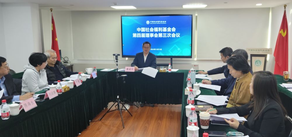 2024年12月18日,中国社会福利基金会(以下简称“基金会”)召开第四届理事会第三次会议。会议听取审议了第四届理事会第二次会议以来的阶段性工作报告,审阅了2024年1月至11月财务收支情况报告,审议表决了人事提名、制度修订等事项。会议由第十四届全国人大代表、全国人大社会建设委员会委员,中国社会福利基金会理事长、党支部书记詹成付主持。