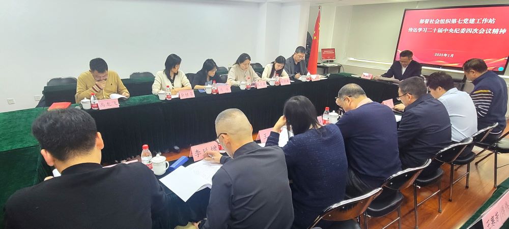2025年1月17日,部管社会组织第七党建工作站召开全体成员单位会议,传达学习中国共产党第二十届中央纪律检查委员会第四次全体会议精神,集中领会习近平总书记在会上所作的重要讲话精神和李希同志在会上所作的工作报告精神,学习领会会议公报精神。各成员单位交流了前一阶段各自学习的做法经验,以及下一步工作打算。第七党建工作站站长单位、中国社会福利基金会党支部书记詹成付主持会议。