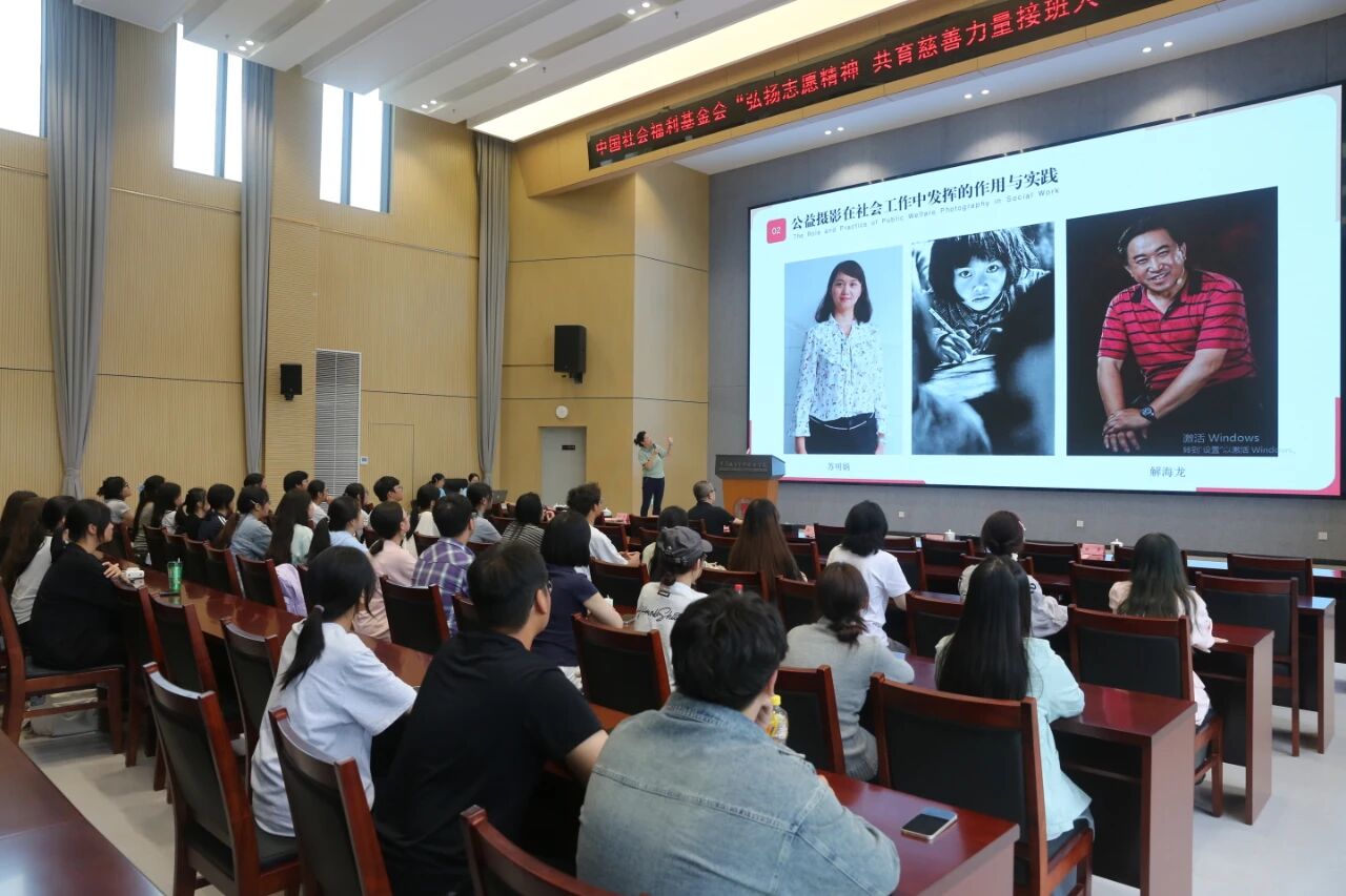 重庆市十大公益人物、公益摄影师冯爽老师,为同学们进行公益摄影在社会工作的作用和拍摄技巧主题分享。他在用镜头语言生动诠释了慈善的温度与力量的同时,也希望同学们作为慈善精神的传承者,加入到志愿服务的行列中来,用专业所学、青春热情,去帮助更多有需要的人,去创造更多的社会价值。