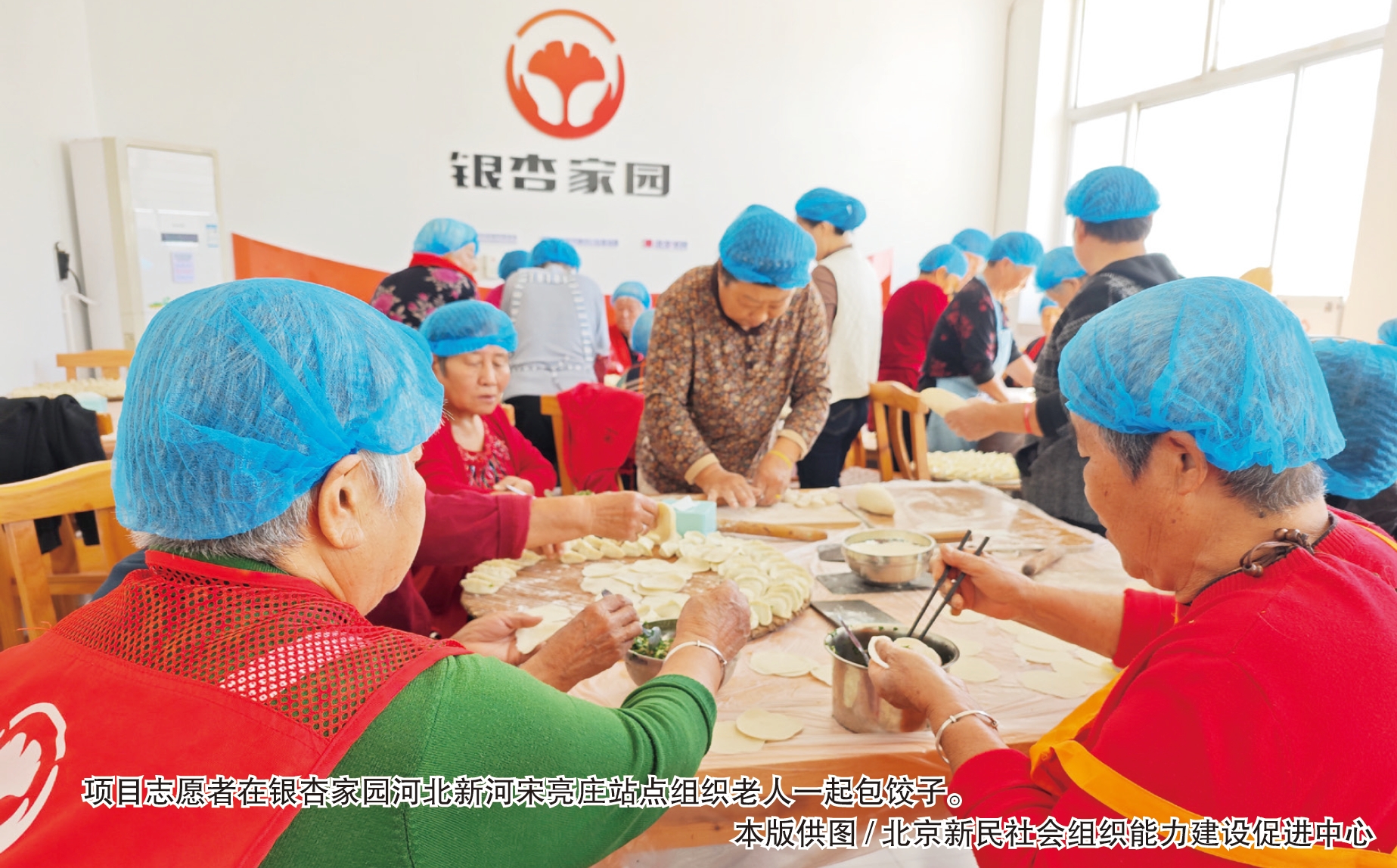 因地制宜的实践在各地开花结果:在江西,闲置校舍、村委大院被改造为银杏家园站点,除了提供午餐,还设有健康监测区、心理咨询室和阅读区,成为老人日常相聚的温暖空间;在北京,专业社工团队聚焦日间照料与精神慰藉,每日组织活动,以“小项目”激活“大片区”,已吸引500多名老人参与;在河北,互助养老和村风建设相结合,活力老人自发组成服务队,主动关怀有需要的老人,带动形成志愿服务风气。