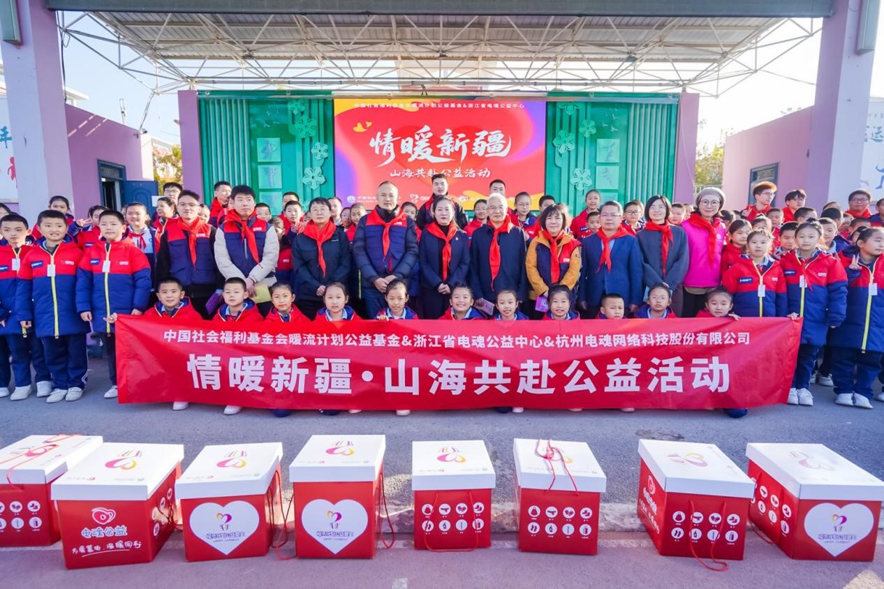 金秋时节,在天山以南与准噶尔以北的校园里,一场跨越万里的温暖正在悄然流动。近日,由中国社会福利基金会暖流计划公益基金、浙江省电魂公益中心、杭州电魂网络科技股份有限公司共同发起的“情暖新疆·山海共赴”公益行动陆续走进第八师石河子总场第一小学、第八师143团第三中学和阿克苏地区依干其镇中心小学,为当地儿童送去保暖物资与成长陪伴。这不仅是一场捐赠,更是一份长期同行的承诺。