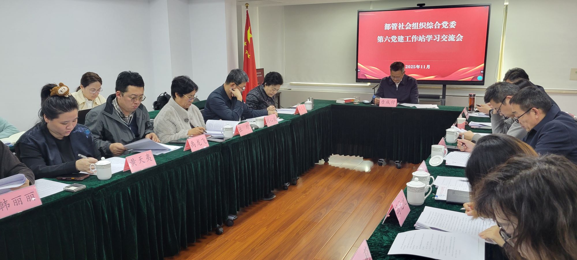 2025年11月4日下午,中国社会福利基金会牵头召开第六党建工作站全体成员单位学习交流会议,传达学习中国共产党第二十届中央委员会第四次全体会议公报、习近平总书记关于《中共中央关于制定国民经济和社会发展第十五个五年规划的建议》的说明、《中共中央关于制定国民经济和社会发展第十五个五年规划的建议》和民政部部管社会组织综合党委关于印发《部管社会组织学习宣传贯彻<习近平关于民政工作论述摘编>工作方案》的通知,研讨交流学习体会和下一步工作打算。民政部部管社会组织综合党委第六党建工作站党建指导员金伟同志和联络员赵娜同志莅临会议指导。中国社会福利基金会党支部书记、理事长兼法定代表人詹成付同志主持会议。