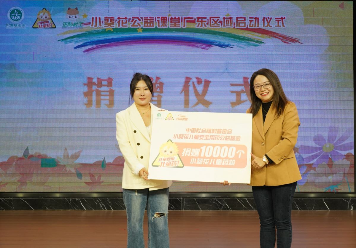 在随后的捐赠仪式上,李扬洋代表捐赠方向活动承办方正阳社工捐赠儿童药箱1万个,用于广东区域的活动开展。这批药箱不仅是一份“爱心礼包”,更成为万户家庭常备的“安全卫士”,真正把公益课堂的科普成果转化为孩子健康成长的日常守护。