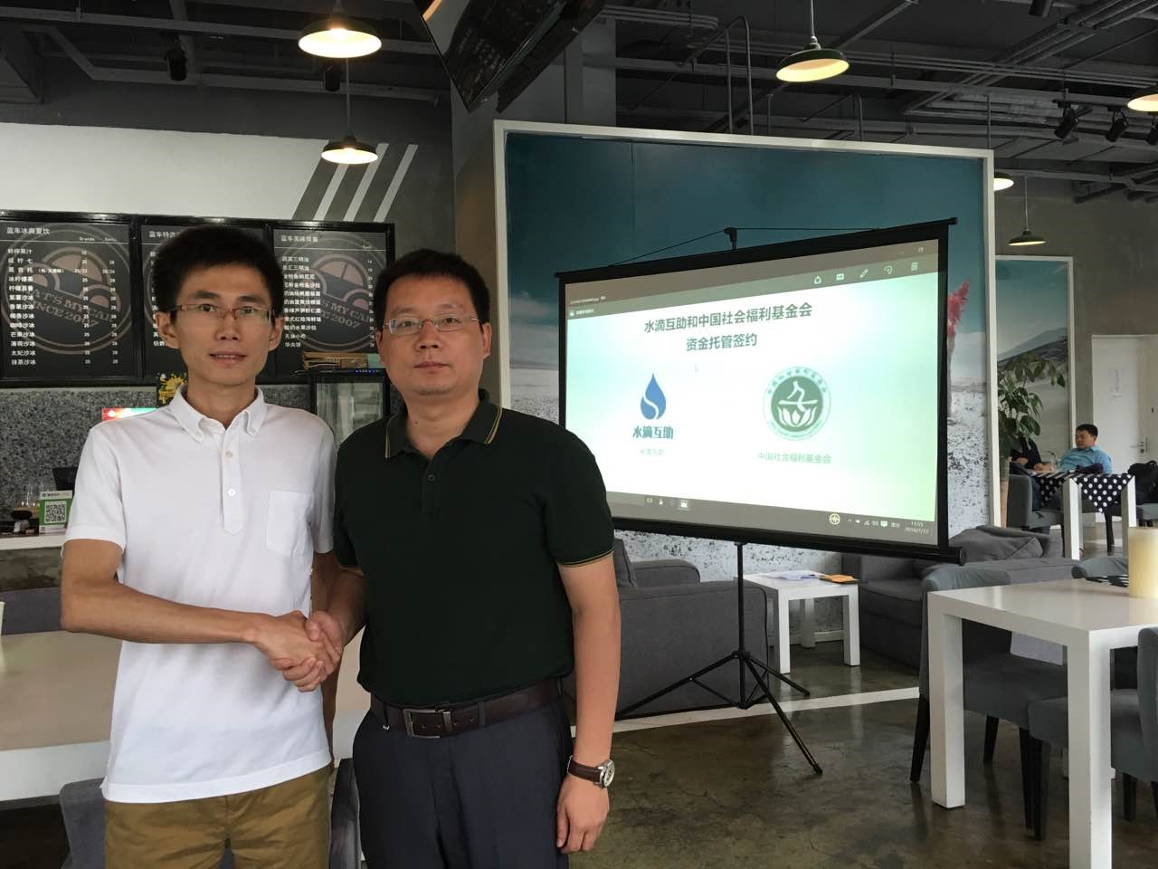 水滴互助创始人CEO和中国社会福利基金会副理事长肖隆君合影