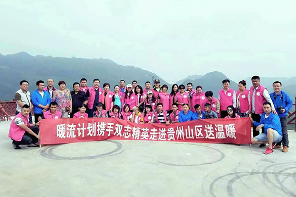 2016年6月17日,双志精英会的14名成员从大连、重庆、三亚、北京等地飞到贵州, 双志精英会是全球领先的创新型商学院,此次携手中国社会福利基金会暖流计划公益基金走进赫章县松林乡箐营小学(76人)、纳雍县张家湾镇平寨小学(218人)、纳雍县左鸠噶苗族彝族乡岩头小学(51人)、松林坡白族彝族苗族乡岔河小学(48人)。为这4所学校分别送去了1套文体包,每个孩子(总计393人)都收到了学习包、雨鞋和新袜子两双。孩子们都格外高兴,而从五湖四海聚集到贵州的双志精英会的会员也都度过了疲惫却特别有意义的一天。