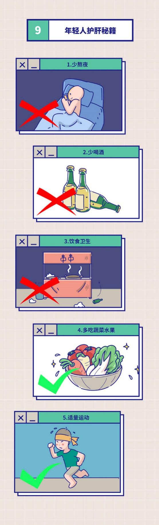 28岁的小李 由于工作需要,经常应酬喝酒到深夜。今年6月,他开始出现发烧、没有食欲等症状。起初他以为自己感冒了,随便吃了两颗感冒药,结果体温没有降下来,小便、皮肤、眼睛逐渐开始变黄。赶紧去医院检查才发现,小李已经出现肝衰竭,再晚一步,后果将不堪设想…