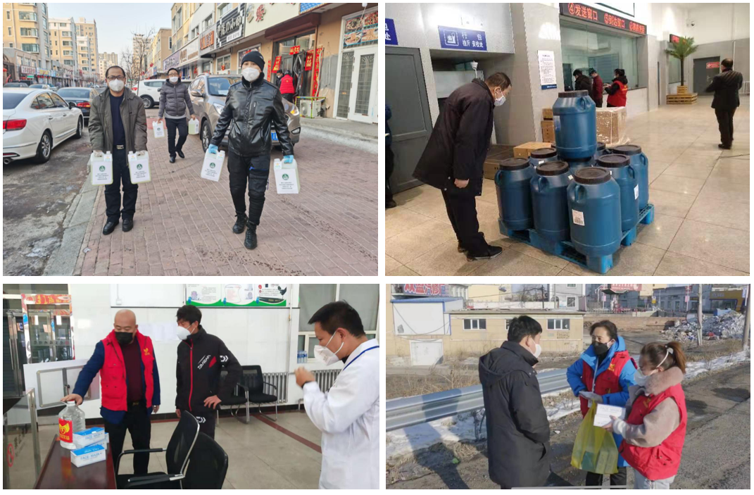 (3)2月8日至11日,黑龙江省伙伴机构-哈尔滨市松北区阳光社会工作服务中心,联合各地市伙伴资源,针对社区、弃管楼道、人员密集场所开展防疫消杀及物资发放工作。其间,在近50余个社区、站点进行了防疫宣传和物资发放,对近50余个社区、单位、站点进行了防疫消杀、人员排查等工作,发放口罩近2500只,消毒液760公斤、泡腾片20万片。受惠地区包括海林、大庆、鸡西等市街道、社区、医院等。在近期工作中,特别针对弃管社区进行防疫消杀及防疫宣传工作。