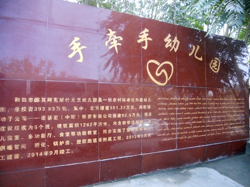 2014年10月10日,“手牵手计划”项目和田市塞其阿克塔什北京幼儿园开园剪彩仪式在该园隆重举行。