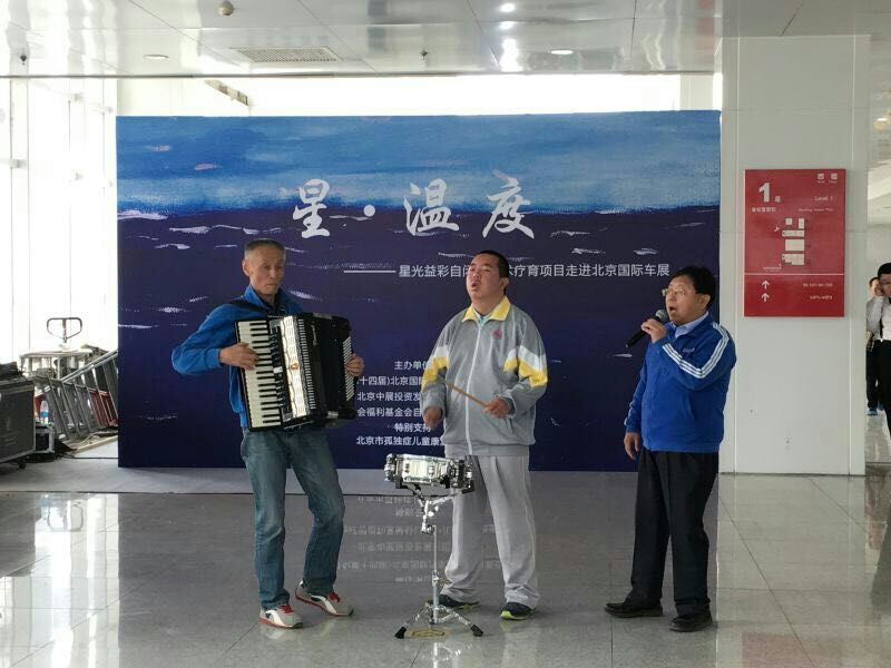 4月26日,2016(第十四届)北京国际汽车展览会在国展新馆举行了名为“星·温度”的关爱自闭症儿童主题公益活动。现场不仅展出了三十余幅自闭症儿童的绘画作品,还邀请了数十位患有自闭症的儿童进行现场绘画和文艺演出。