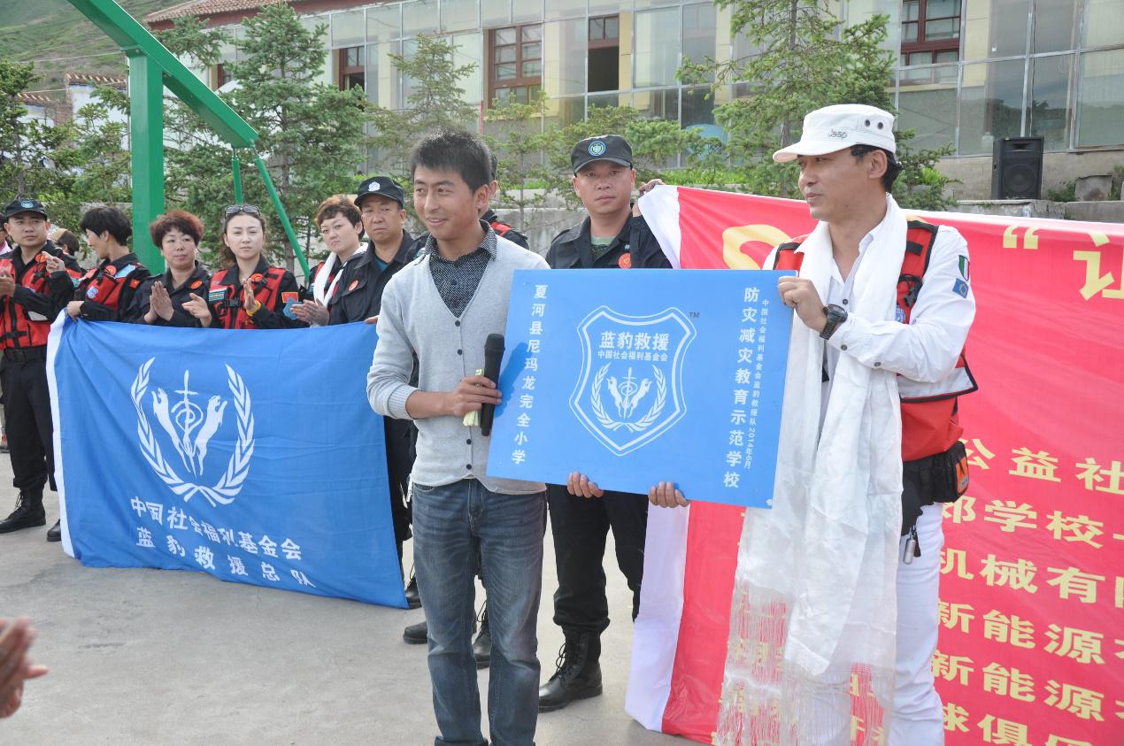 次日,蓝豹救援兰州队给拉卜楞镇九甲小学捐赠了电脑和投影仪,及大量书籍和学习用品,并将拉卜楞镇九甲小学定为防灾减灾教育示范学校。