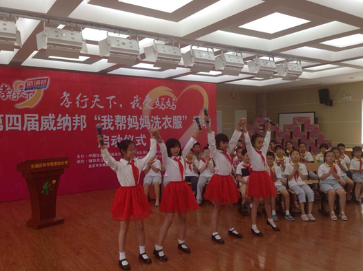 2014年7月4日上午,在稚气琅琅的“弟子规”诵读声中,由中国社会福利基金会、中国少先队事业发展中心主办,辅导员公益基金、石家庄威纳邦日化有限公司和北京市东城区和平里四小承办的第四届“孝行天下 我爱妈妈——我帮妈妈洗衣服”公益活动启动仪式在和平里四小隆重举行。
