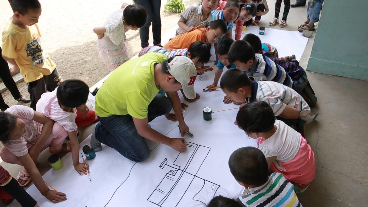 绿爱童年为留家庄的300名小学生每人送去一套画本和画笔作为礼物,并在距离中心学校较远的南马庄乡一所村小的校园里进行了一堂特殊而生动的美术课。