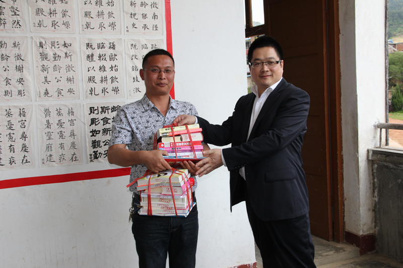 在学校图书室,当得知图书储量小,缺少更新时,范贤生代表中经城市发展研究中心捐赠一批图书给庙前小学。