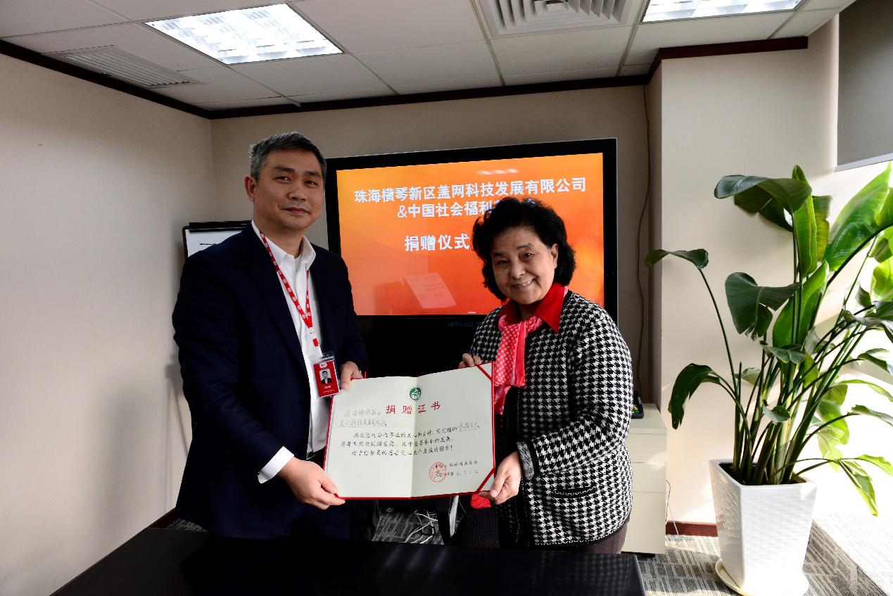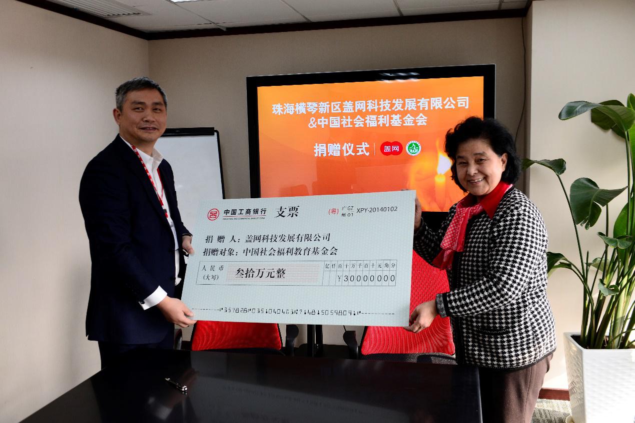 近期,盖网科技发展有限公司总裁郑永雄先生在盖网广州总部与中国社会福利基金会副理事长兼秘书长缪力出席了捐赠签约仪式,盖网科技发展有限公司会员李绍增等向中国社会福利基金会救灾救援部蓝豹救援队捐赠人民币30万元,用于支持蓝豹救援队的队伍建设(救援装备支持)。为队伍今后灾害救援提供精良的装备保障。另捐赠5万用于支持基金会工作。