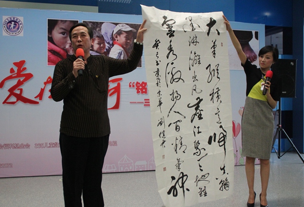 爱心认捐环节最感人,有五幅作品参与了现场拍卖,孩子们比家长们的热情还要高涨,一个个伸出小手替父母喊出爱心认捐价。书法家刘健君也捐献作品。此次活动共认捐善款13710元,全部善款将捐给红河州山里的孩子们。