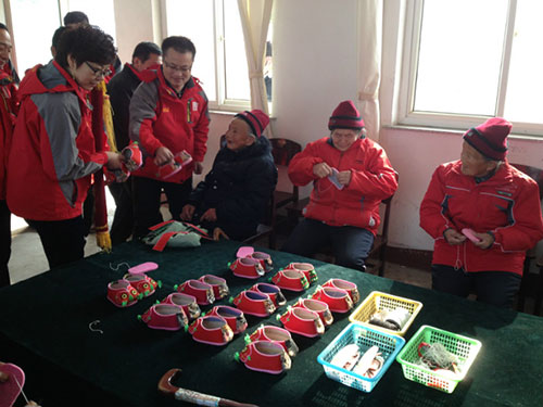 当天活动现场,乐基金山东执行主任周龙在仪式上做了热情洋溢的讲话之后,乐基金志愿者为敬老院老人们每人发放一份装有老人生活必需品的爱心大礼包,老人们则以歌唱的形式表达对乐基金的感谢之情。接着,乐基金志愿者又马不停蹄地来到敬老院行动不便的老人们住所,亲自将爱心礼包一一送到他们的手中。当乐基金志愿者询问老人身体状况及在敬老院生活状况的时,老人们纷纷为志愿者们展示自己的一技之长,织布、缝纫、做鞋成为许多老人日常生活的一部分。随后,乐基金志愿者还参观了老人们平日用餐的食堂并亲手包饺子为老人们准备午餐,现场气氛其乐融融。