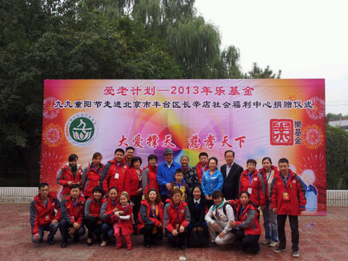 2013年10月13日下午,由中国社会福利基金会主办,中国社会福利基金会乐基金承办的“爱老计划—2013乐基金走进北京市丰台区长辛店社会福利中心“捐赠仪式在丰台区长辛店社会福利中心院内隆重举办。该捐赠仪式主要是向福利中心院的老人捐赠爱心礼包。