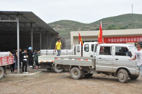 当天下午3时,在蓝天救援队协调下,中国福基会首批物资、由11辆车组成的物资车队前往辘辘村。由于路途受阻,行至半途后改为三轮车转运至辘辘村山脚后由人工逐趟背上山分发至户。
