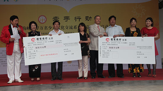 活动现场河北宇河矿业集团公司向中国社会福利基金会牵手基金捐赠500万元人民币,开展两岸文化交流活动。此项善款将从5月份开始,根据活动具体实施情况陆续拨付。捐赠仪式上,河北宇河矿业集团公司董事长王礼所表示捐赠500万元人民币,支持“牵手行动”这项公益活动,张仲副理事长代表基金会对河北宇河矿业集团公司的善举表示感谢。
