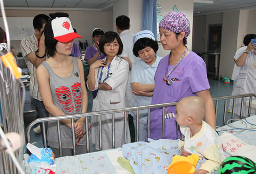 6月21日,受童爱计划----儿童大病联合救助项目办公室委托,著名节目主持人谢娜到北京安贞医院看望接受救助的先心病儿童。中国社会福利基金会副秘书长肖隆君对谢娜的到访表示欢迎,并为她介绍了正在住院的孩子们的情况。