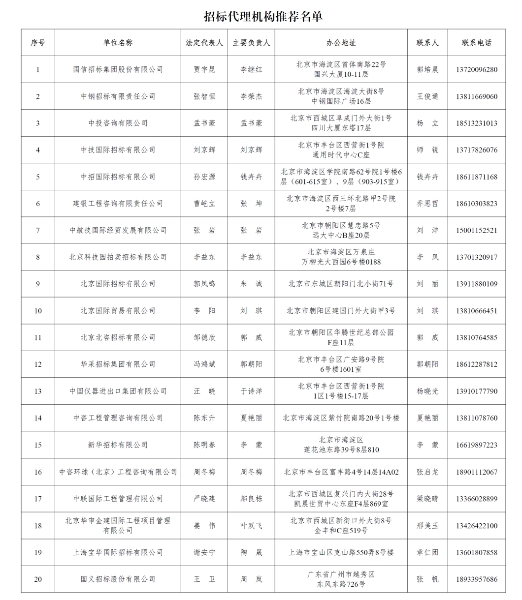 因基金会公益项目物资与服务采购的需要,确保采购流程的合法合规,提高慈善财产的使用效益,特邀请中国招标投标协会推荐具备合法资质、业界声誉和代理业绩良好、3年内无重大违法记录的20家机构,作为中国社会福利基金会公益项目物资与服务采购招标代理机构。现公示名单如下: